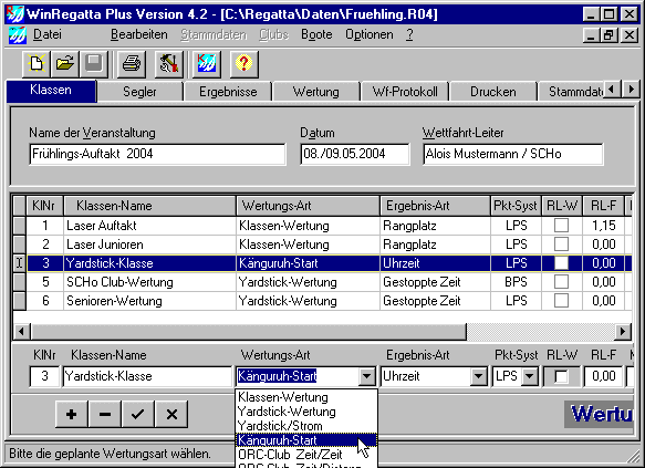 (Klassen- oder Yardstick-Wertung), das Punktsystem, die Mannschaftsstärke