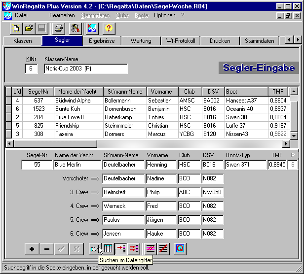 Die Erweiterung auf bis zu sechs Segler pro Boot wird in WinRegatta